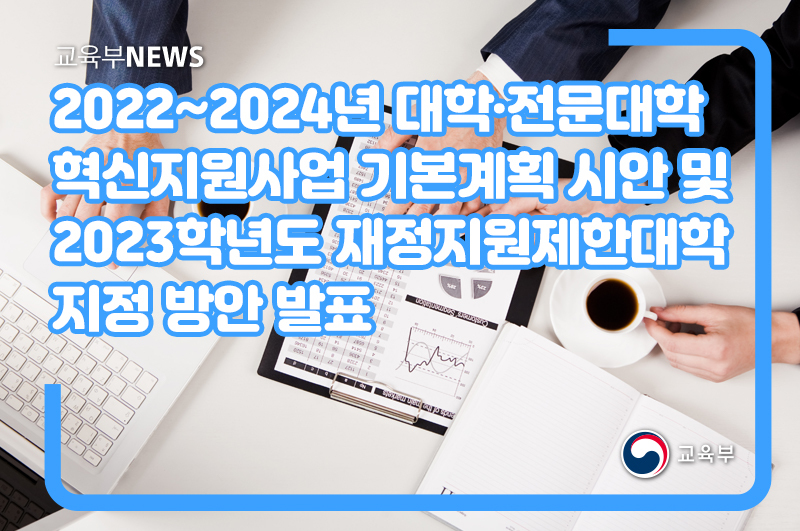 교육부(부총리 겸 교육부장관 유은혜)는 2022~2024년 대학・전문대학 혁신지원사업 기본계획 시안, 일반재정지원대학 추가 선정 계획(안) 및 2023학년도 재정지원제한대학 지정 방안을 12월 29일(수) 발표했다.