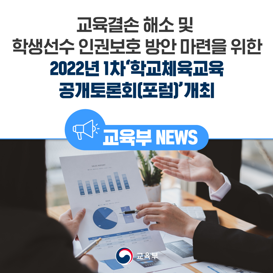 교육부와 학교체육진흥회*는 ‘제1회 2022년 1차 학교체육교육 공개토론회(포럼)’를 6월 16일(목), 한국교원대학교 청람아트홀에서 개최한다.