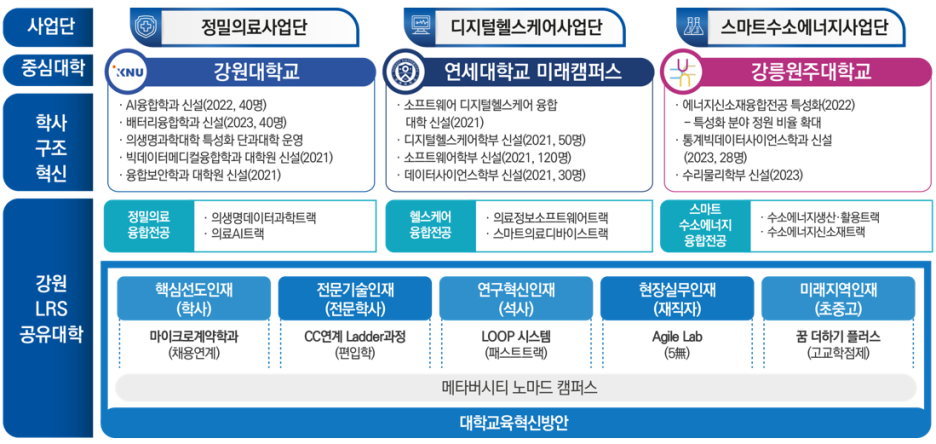 강원대(총괄), 연세대 미래(중심), 강릉원주대(중심)