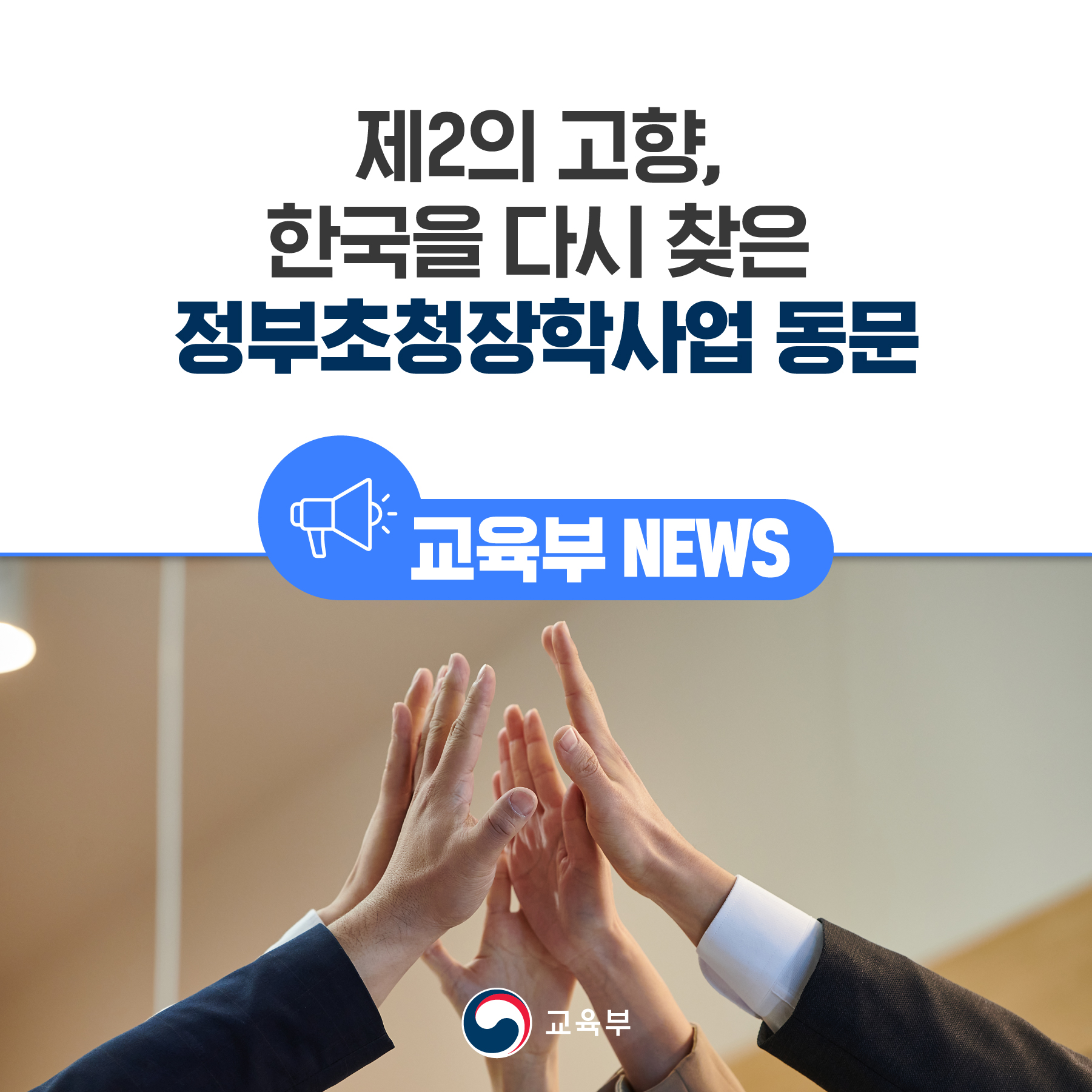 교육부가 1967년부터 추진해 오고 있는 정부초청장학사업은 해외 우수인재 발굴·육성을 통해 세계적 인재를 양성하는 국가 장학 사업이다. 현재까지 총 157개국에서 13,876명의 외국인 장학생을 선발하였고, 이 프로그램을 통해 배출된 7,900여 명의 동문들은 전 세계의 정계, 재계, 학계 등 다양한 분야에서 활발하게 활동하고 있다.