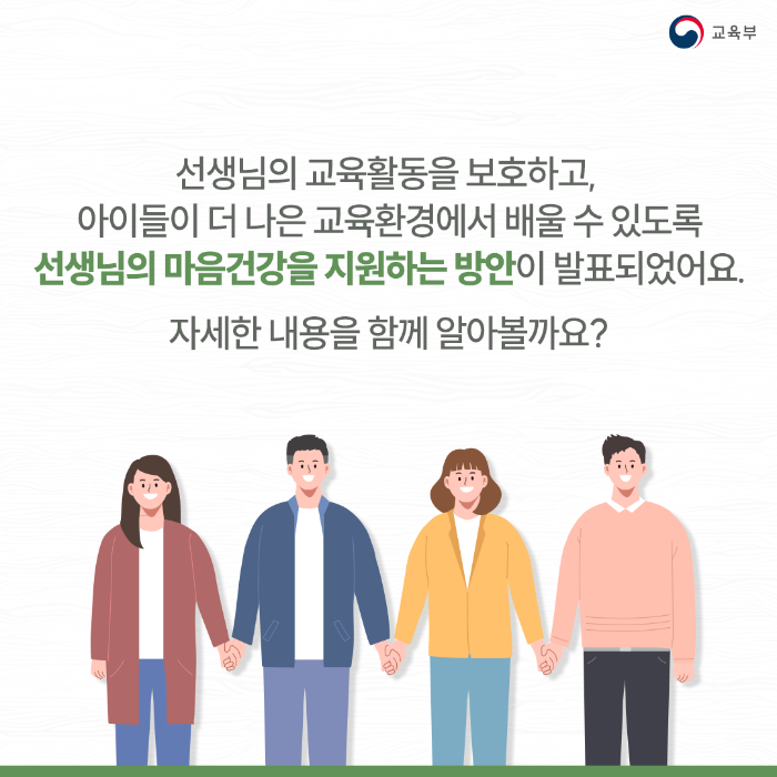 선생님의 마음건강을 지원하는 방안이 발표되었습니다.