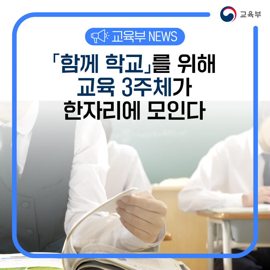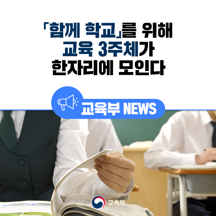 교육부(부총리 겸 교육부장관 이주호)는 10월 5일(목), 세종청사에서 학생·학부모·현장 교원이 한자리에 모여 직접 소통하는 ‘「함께 학교」를 위한 교육 3주체와의 대화’를 개최한다. 이날 전국 각지에서 온 학생, 학부모, 교원 약 50여 명과 함께 조희연 서울시 교육감, 서거석 전라북도 교육감이 참석한다.