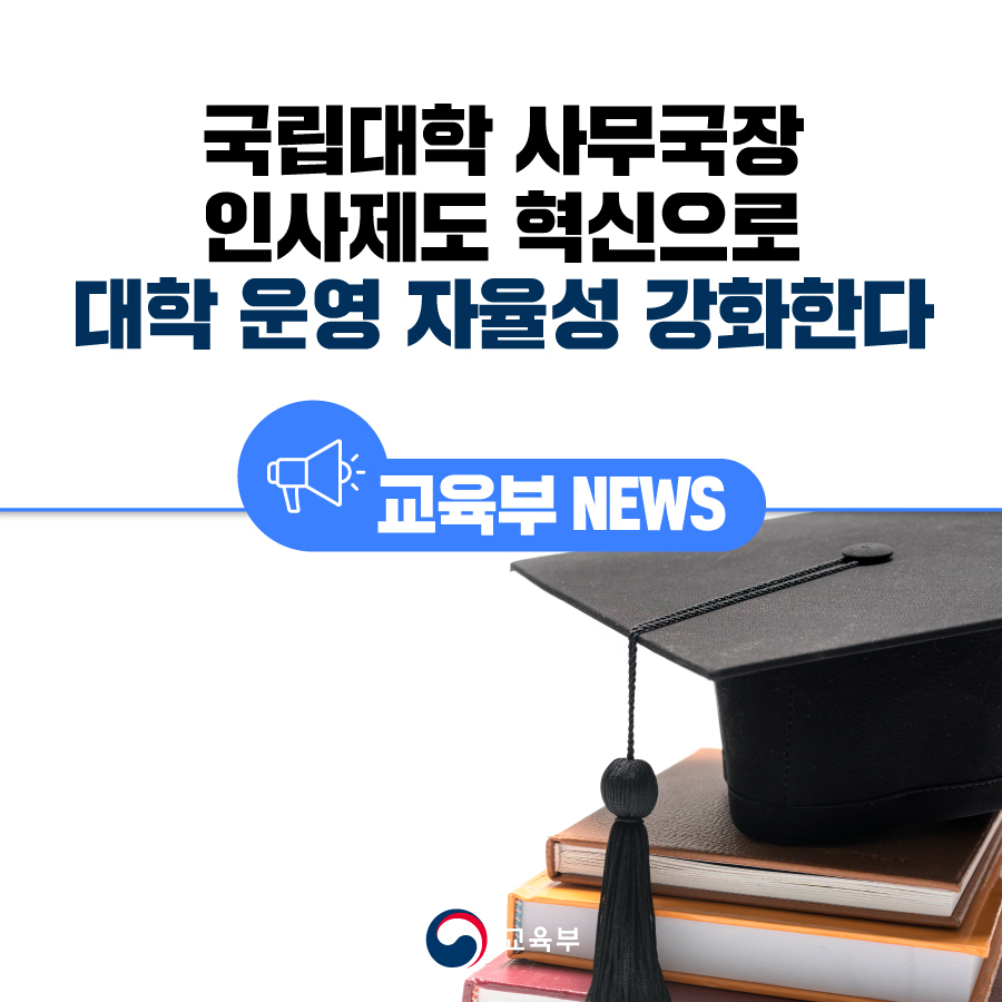 이주호 부총리 겸 교육부장관은 “국립대학 사무국장 인사제도 혁신은 교육부가 기득권을 내려놓은 변화의 시작으로, 이를 통해 국립대학이 자율적 혁신을 촉진시킬 수 있는 기회가 될 것으로 기대한다.”라고 말하며, “교육부는 앞으로도 현장 소통을 지속하여 새로운 사무국장 인사제도가 조속히 현장에 안착될 수 있도록 적극 지원하고 규제혁신에 최선을 다하겠다.”라고 밝혔다.