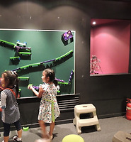 배가 지나가도록 다리가 올라가고 자동차를 실린더로 들어서 이동시키는 이 멋진 미래도시는 동아마이스터고등학교 자동화시스템과 학생들의 작품입니다. 일찍 적성에 맞는 진로를 찾고 실무 위주의 전문화된 교육을 받는 마이스터고나 특성화고에 대한 관심이 점점 높아지고 있는데요. 그래서인지 학생뿐만 아니라 부모님들도 꿈 키움관에서 상담을 많이 하시더라고요. 작품에 대해 열정적으로 설명하는 모습을 보니 정말 자기가 원하는 길을 가고 있구나 하는 생각에 부러운 마음도 들었습니다. 역시 학생들의 작품인 두더지 잡기 보드게임은 초등학생에게 인기 만점이었답니다.