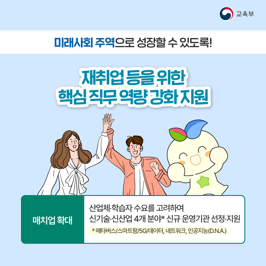 #교육부 #교육분야 #청년정책 #국가장학금 #학자금대출부담경감 #대학생거주부담완화 #고숙련 #기술인재 #조기양성 #맞춤형진로 #취업지원 #매치업확대
