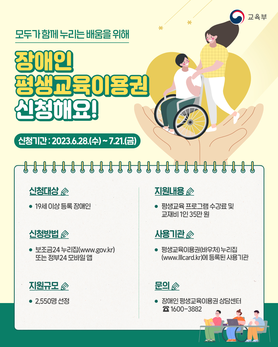 모두가 함께 누리는 배움을 위해 장애인 평생교육이용권 신청해요!