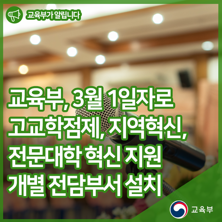 교육부, 3월 1일자로 고교학점제, 지역혁신, 전문대학 혁신 지원 개별 전담부서 설치 본문