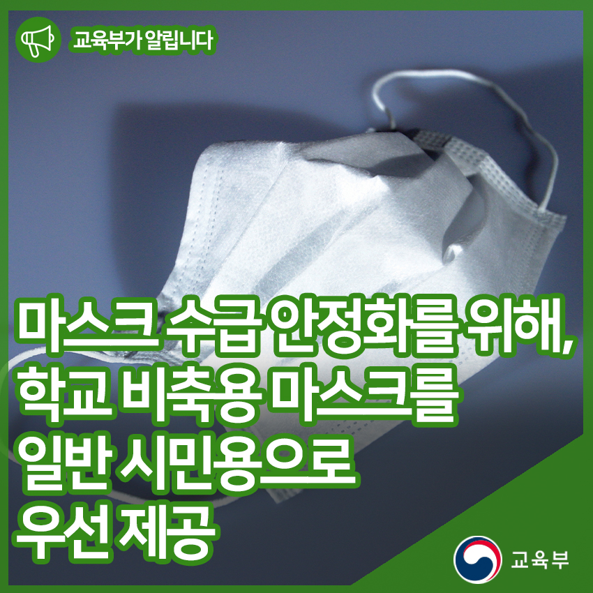 마스크 수급 안정화를 위해, 학교 비축용 마스크를 일반 시민용으로 우선 제공