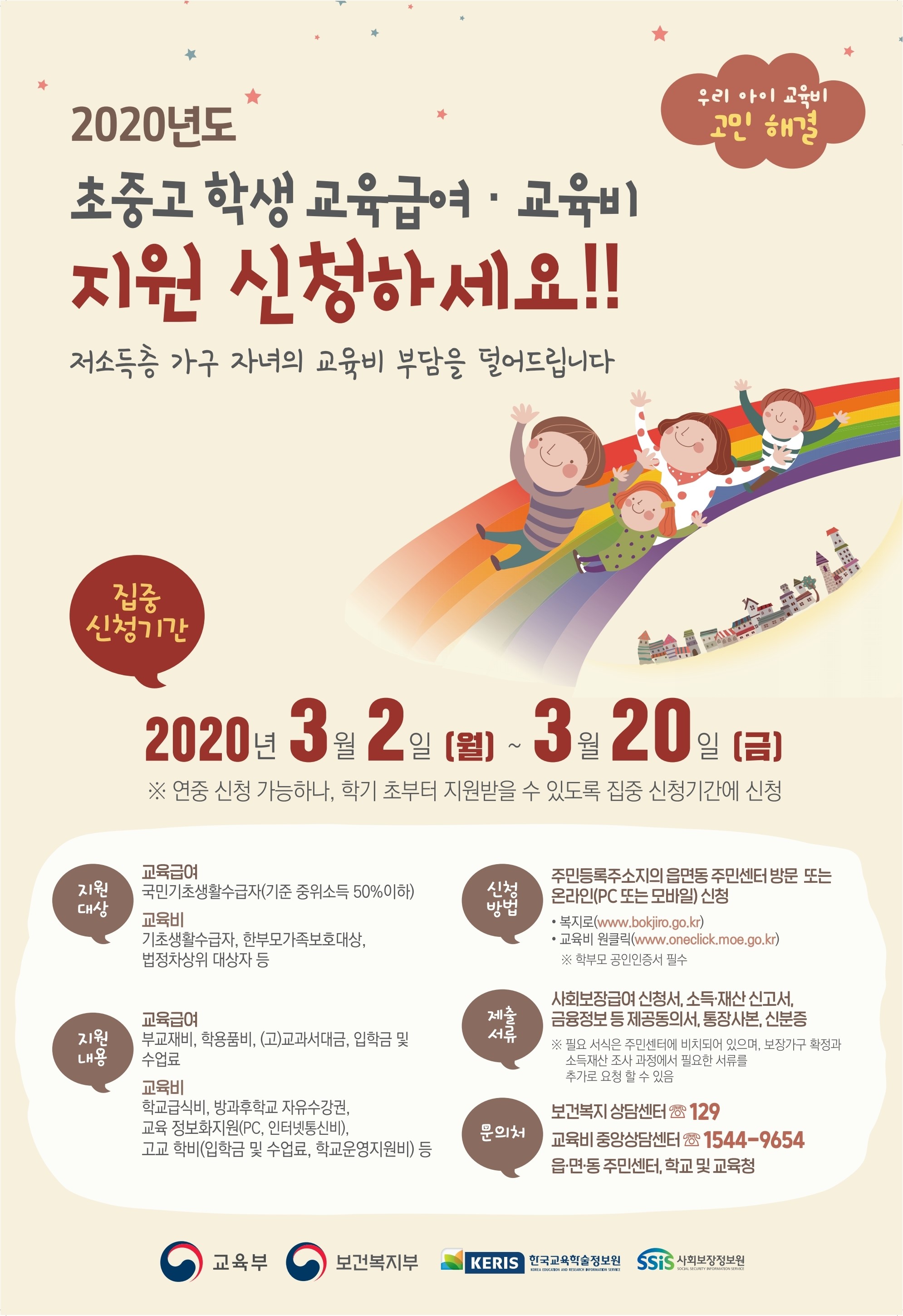 [2020년 초중고 학생 교육급여·교육비, 지금 신청하세요!] 본문