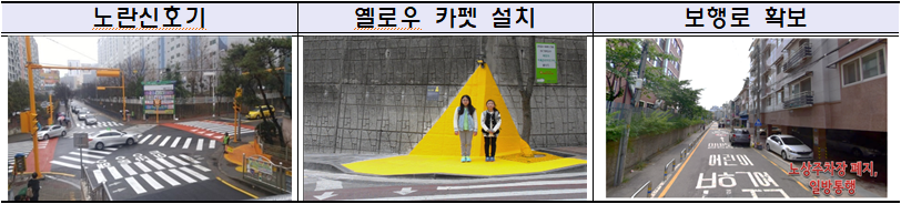 ※ 어린이 교통사고 위험지역 CCTV 2,087대, 신호등 2,146개 우선 설치(’20.上∼) / 옐로우카펫, 노란발자국 등 식별 용이성 강화 시설 초등학교(100교) 시범사업(’20.下∼)(행안부∙경찰청 협업)