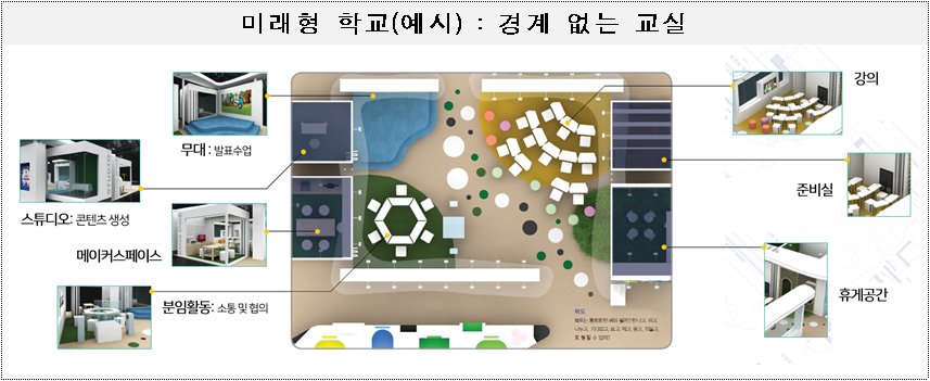 미래형 교육이 가능하도록 올해 600개교 교실을 혁신할 계획이며, 학교 전체 공간을 전면 재구조화하는 사업*도 개시한다.