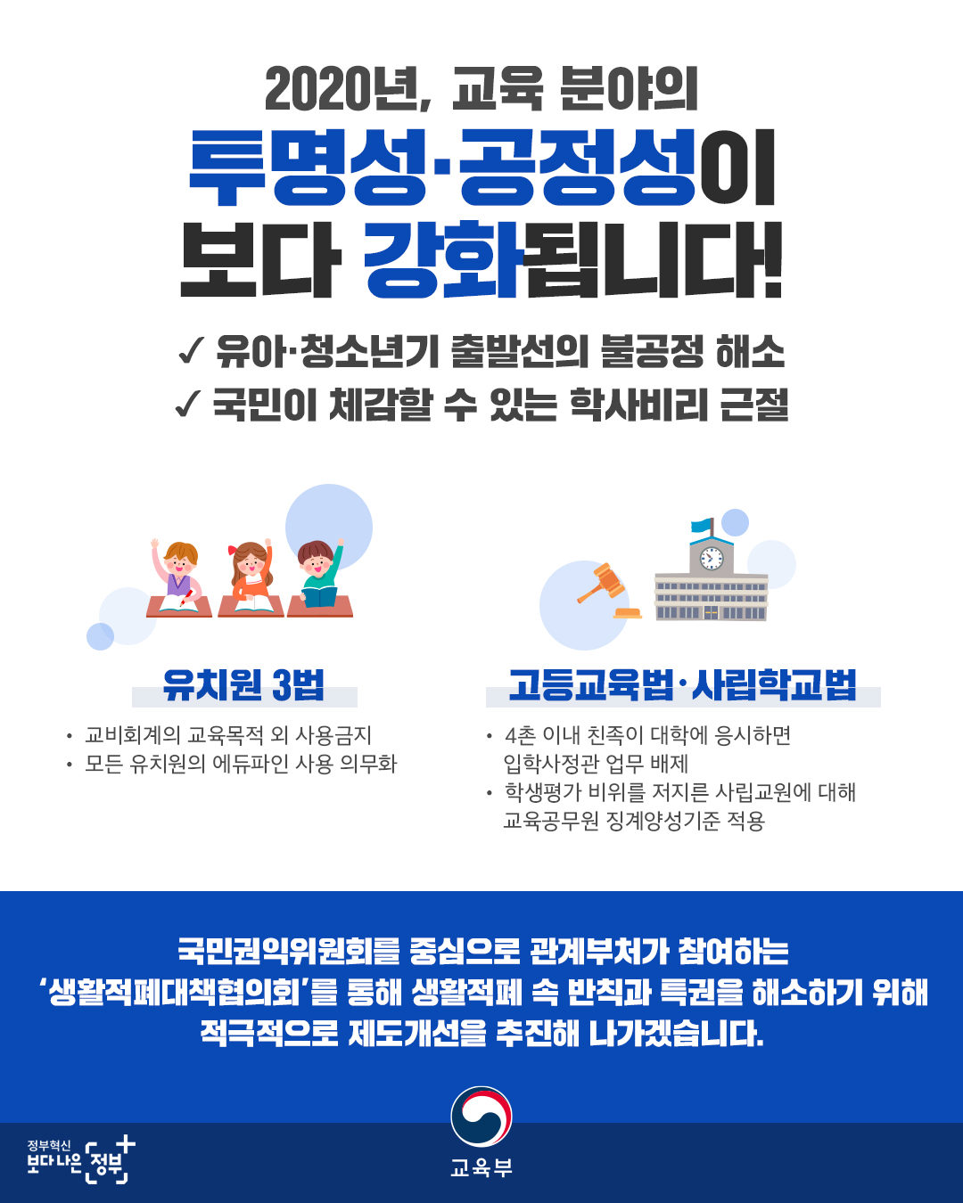 2020년, 교육분야의 투명성·공정성이 보다 강화됩니다!