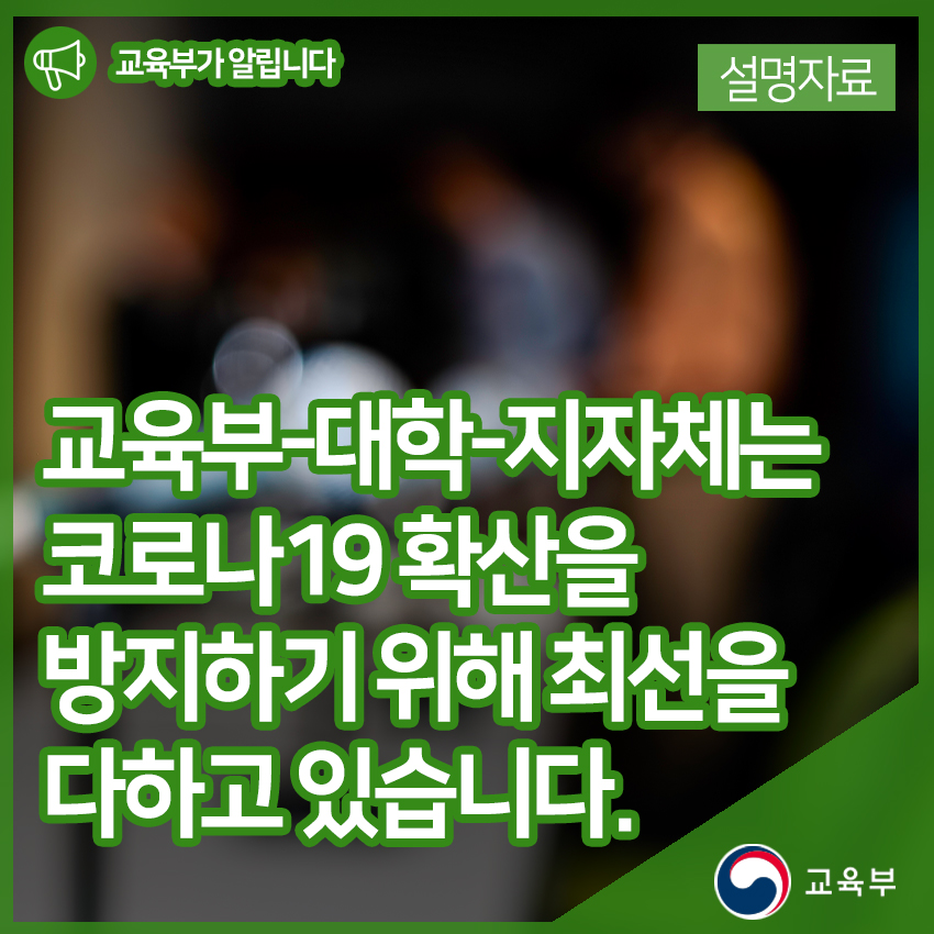 교육부-대학-지자체는 긴밀히 협력하여 코로나19 확산을 방지하기 위해 최선을 다하고 있습니다. 본문
