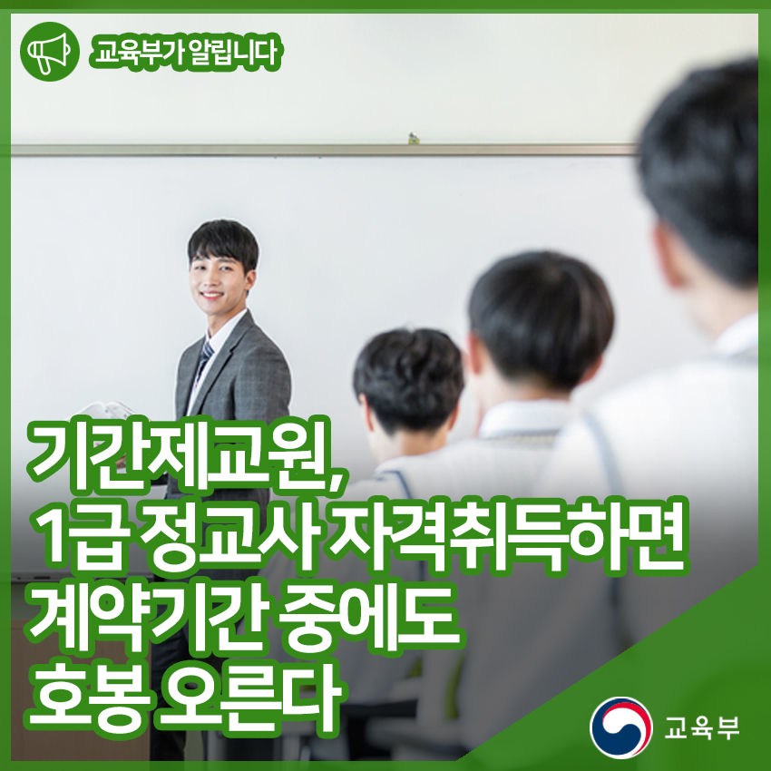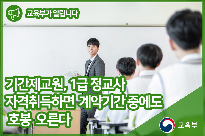 기간제교원, 1급 정교사 자격취득하면 계약기간 중에도 호봉 오른다 본문