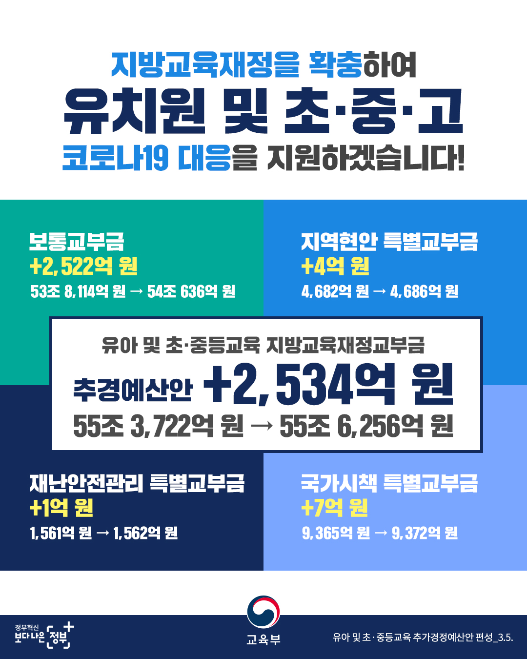 지방교육재정을 확충(추경예산안 2,534억원)하여