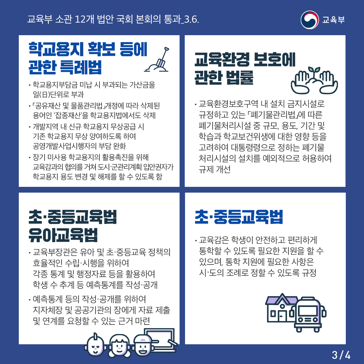 교육부 소관 12개 법안이 3.6. 의결되었습니다.