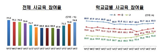 사교육 참여율 74.8%, 주당 사교육 참여시간 6.5시간 |