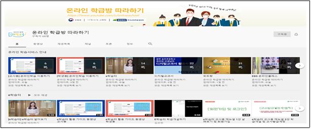 이 외에도 ‘온라인 학급방 따라하기’ 유튜브 채널을 통해 e학습터, 위두랑 개설․운영 등의 동영상은 물론 SNS를 활용한 학급방 운영 등 선생님들이 직접 제작한 학급방 활용 동영상도 안내하고 있다.