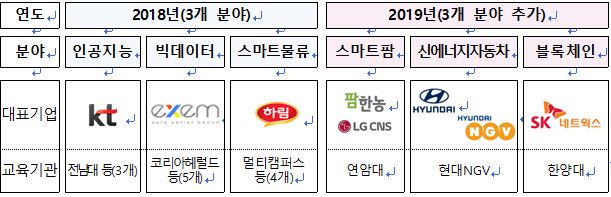 < 운영분야별 대표기업 및 교육기관 현황 (2018~2019년) >