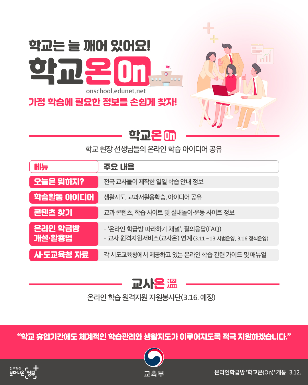 ‘학교온(On)’이 온라인 학급방 운영 비법을 알려드립니다.◈ 교육부-시도교육청 협력을 통한 휴업기간 ...