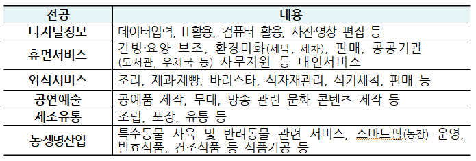 ◈ 대학의 교육자원과 연계하여 직업 분야에 특성화된