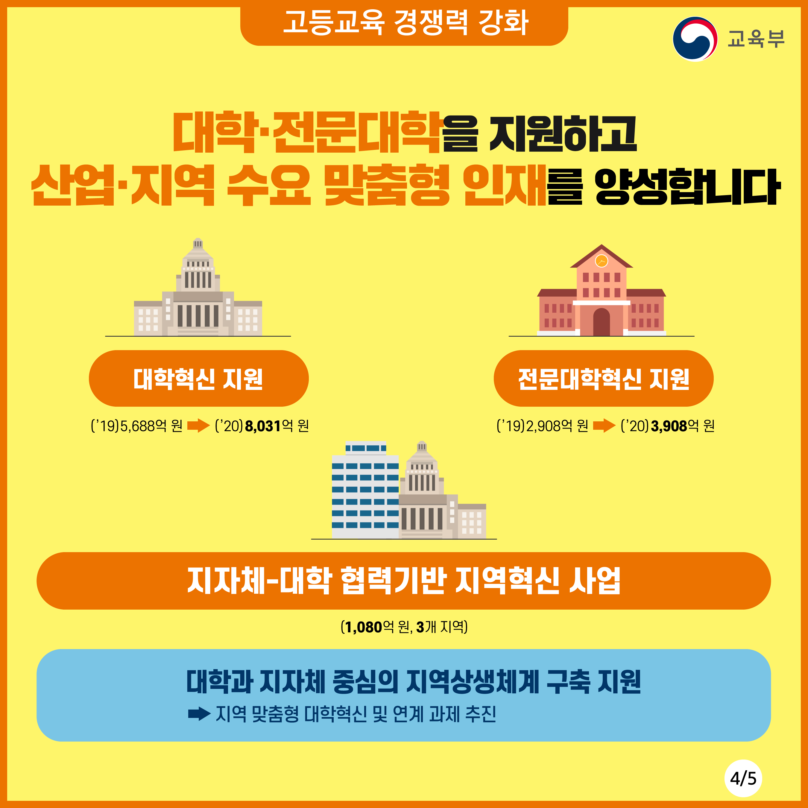 대학전문대학을 지원하고 산업지역 수요 맞춤형 인재를 양성합니다.
