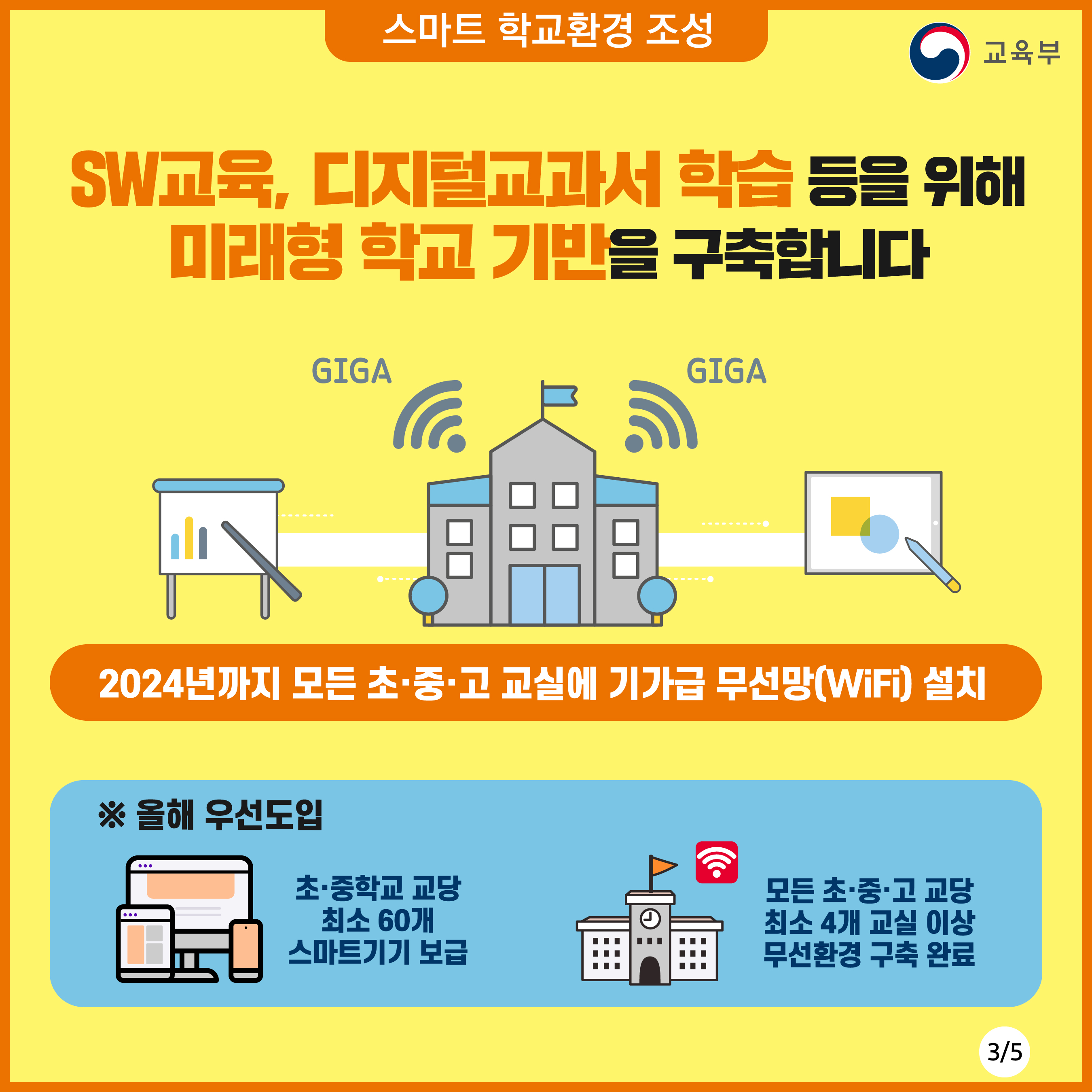 - 2024년까지 모든 초·중·고 교실에 기가급 무선망(WiFi) 설치