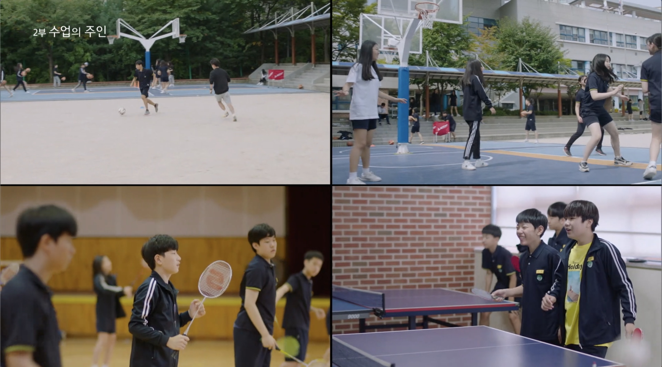 보평중학교의 체육 수업은 독특한 시스템으로 운영됩니다. 수업은 농구, 탁구, 축구, 배드민턴 등 5가지 종목으로 이루어져 있는데요. 학생들은 이 중에서 자신이 원하는 2개의 종목을 선택해 1년간 배우게 됩니다. 학생들은 자기가 배우고 싶은 종목을 직접 선택하면서 자기결정성이 높아지고 종목에 대한 책임감도 높아집니다.