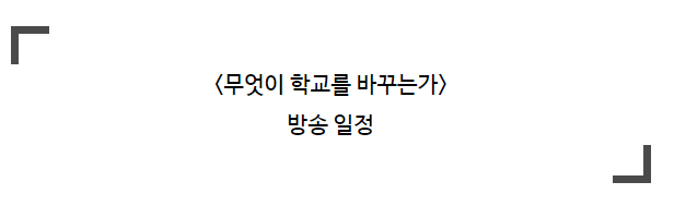 저녁 9시 50분에 <무엇이 학교를 바꾸는가>가 방송됩니다. 혁신이라는 옷을 입고 새로운 시도를 하는 세계의 학교들에 대해 알아보려고 합니다. 더 많은 이야기가 궁금하다면, EBS 9시 50분 본 방송을 시청해 보세요.