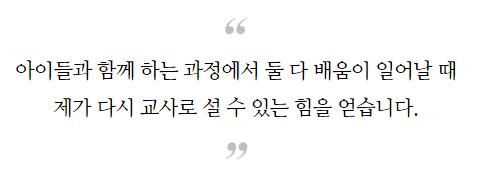 과거에는 지식의 전달자였다면 이제는 수업의 설계자가 되었다는 선생님들은 말합니다. 교실 밖 세상으로부터 참신하고 깊이 있는 수업 교재를 가져오는 것, 그것을 통해 아이들의 삶과 연결되는 수업을 설계하는 것이 수업 준비에 있어 가장 중요합니다.