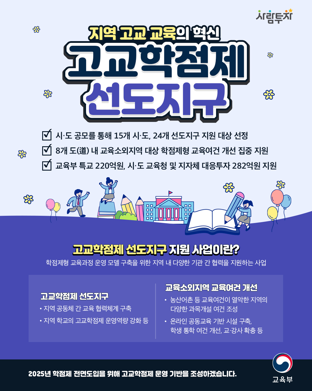 ✔ 교육부 특별교부금 220억원, 시도교육청 및 지자체 대응투자 282억원 지원