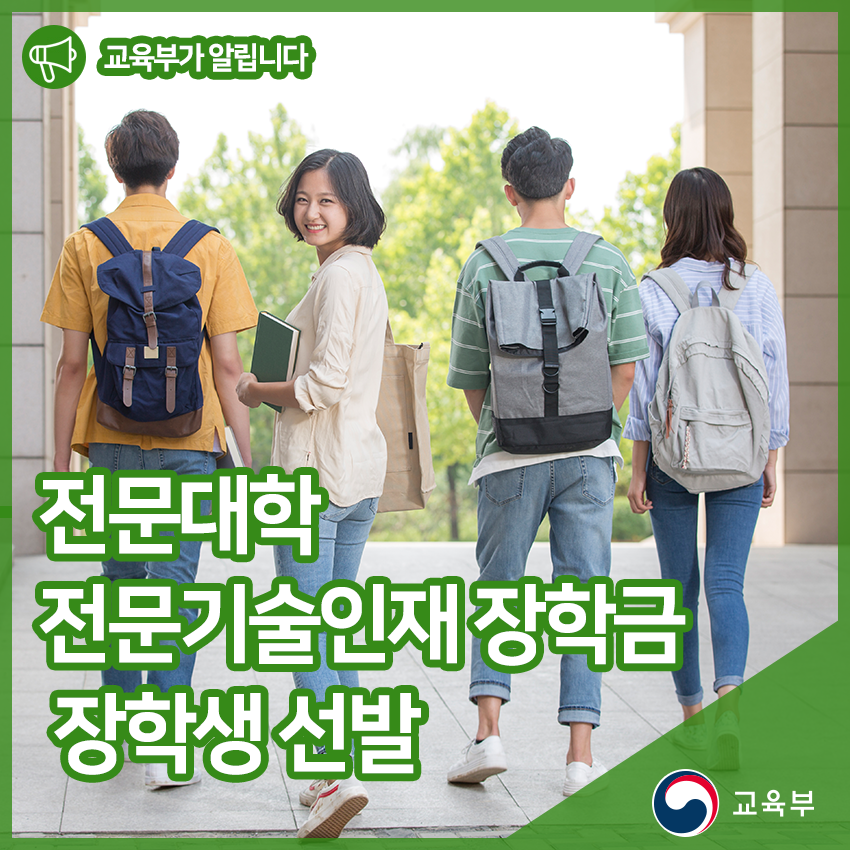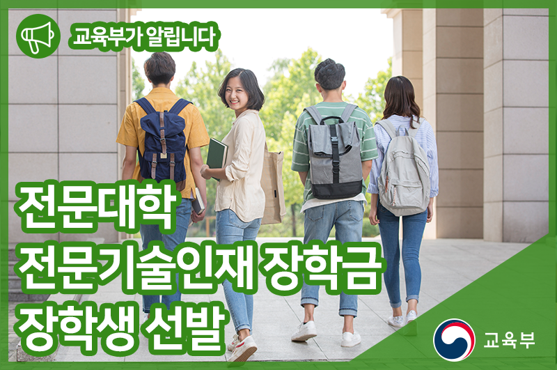‘전문기술인재 장학금’은 전문대학의 고등직업교육을 통한 전문기술 인재 양성을 위해 2020년에 신설된 국가장학사업이다.