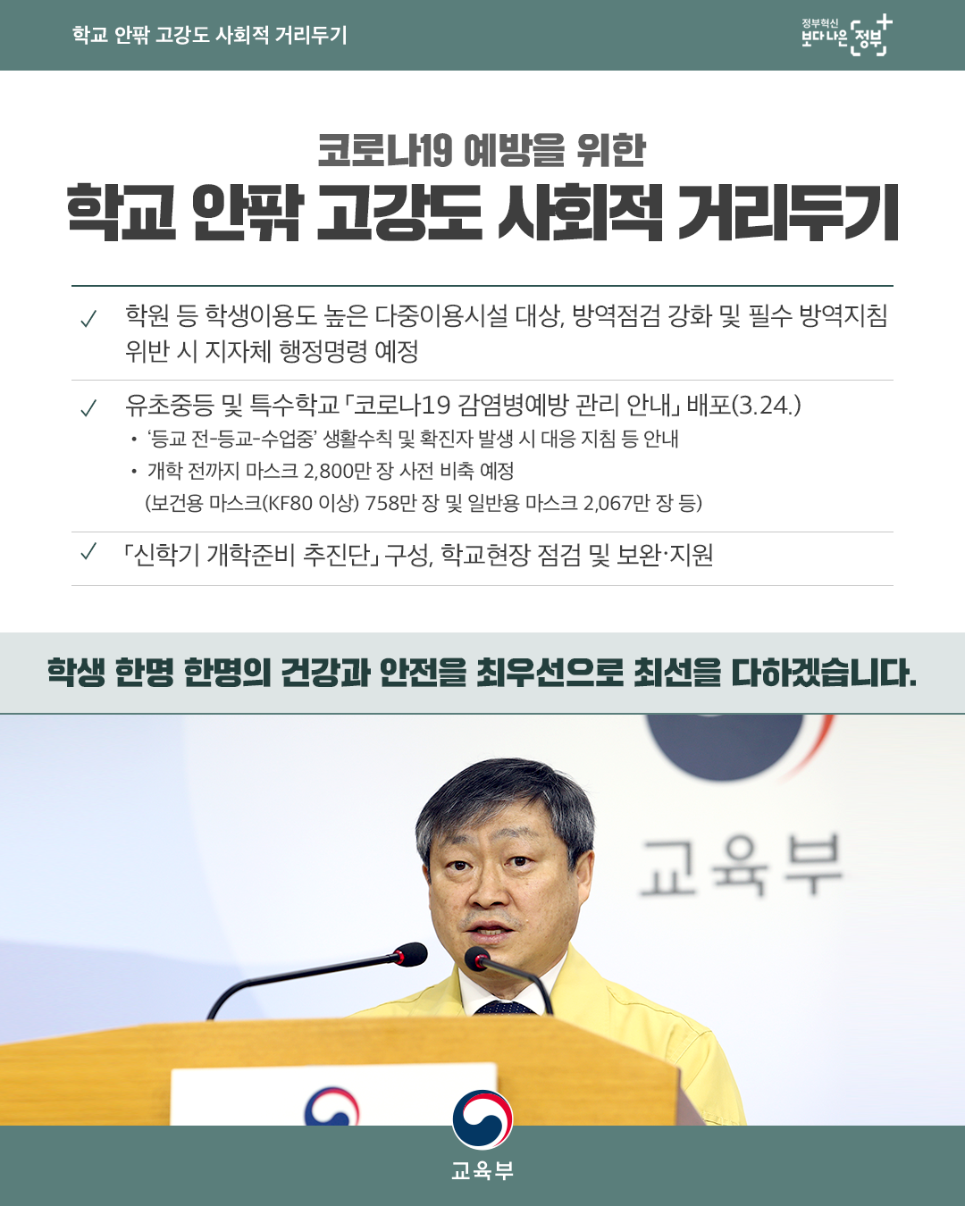 ✔ 신학기 개학준비 추진단 구성, 학교현장 점검 및 보완·지원