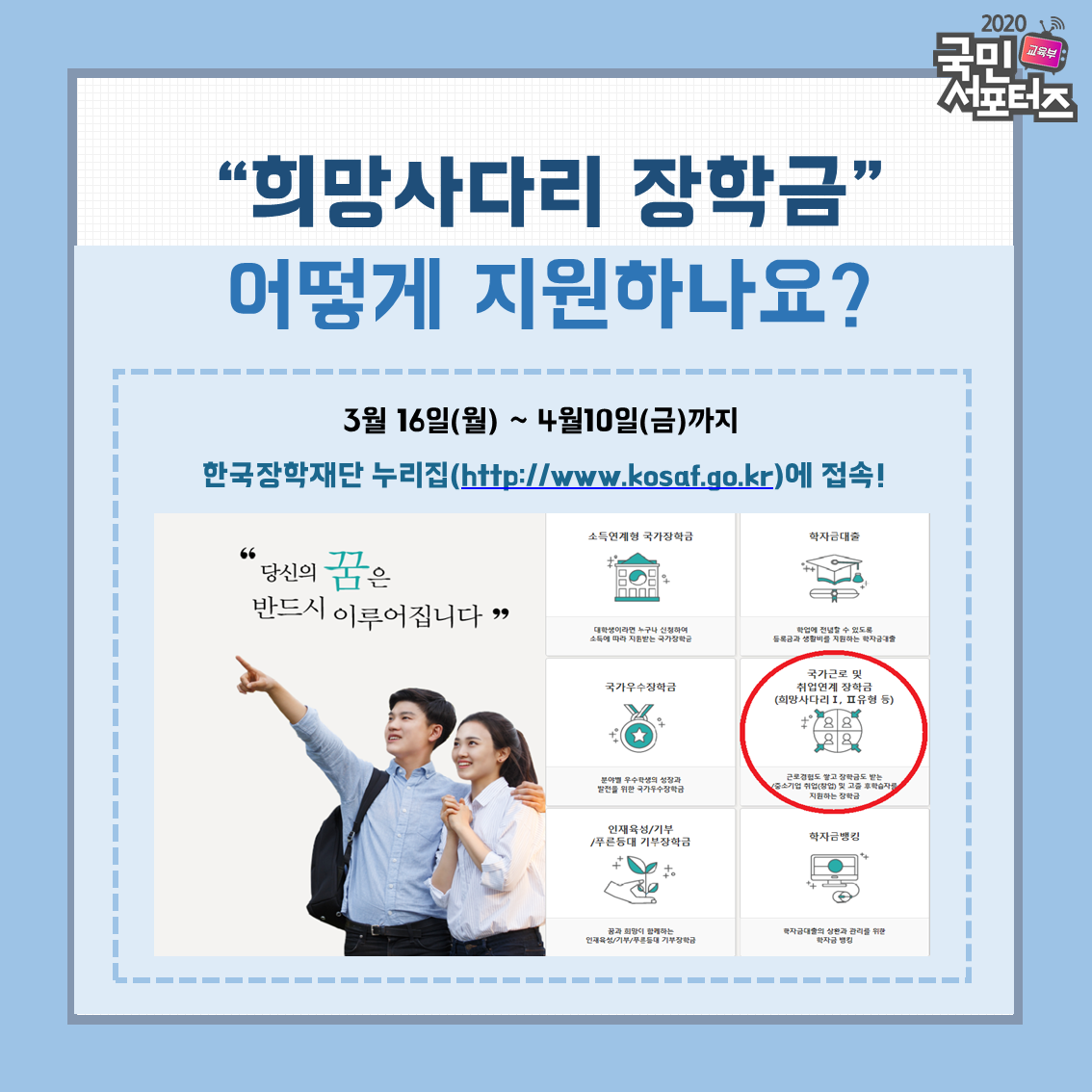 대학생에서 직장인까지 지원해주는 장학금, 희망사다리 장학금 (~4/10) 본문