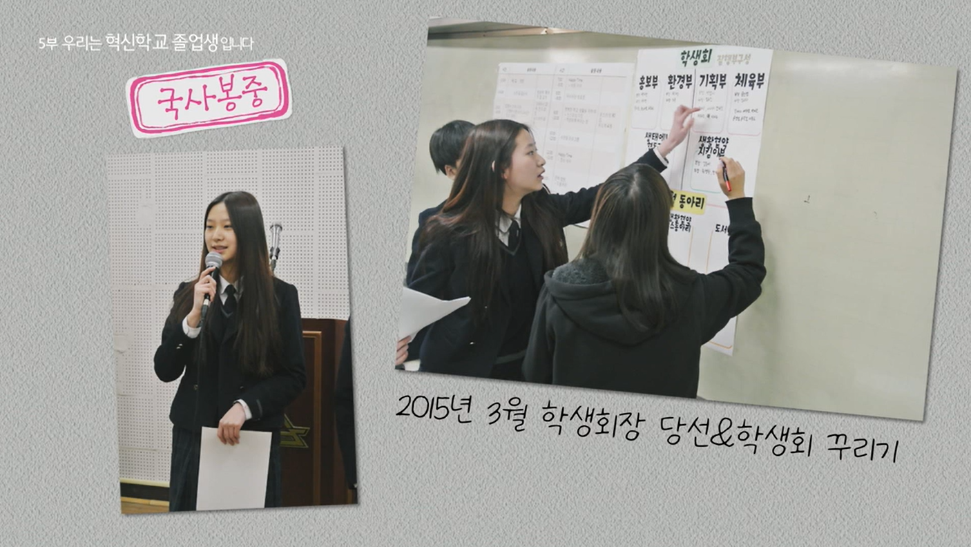 국사봉중학교 성나영 졸업생은 “나의 사소한 의견이 학교에 반영되는 경험을 하고 나니까 내가 학교라는 큰 공간에 있지만 나 하나의 존재가 정말 중요하구나를 많이 느낄 수 있었다” 라며 학교가 학생에게 자율성을 주는 만큼 학생들은 책임감을 더 느끼고 학교생활을 할 수 있었다고 합니다.