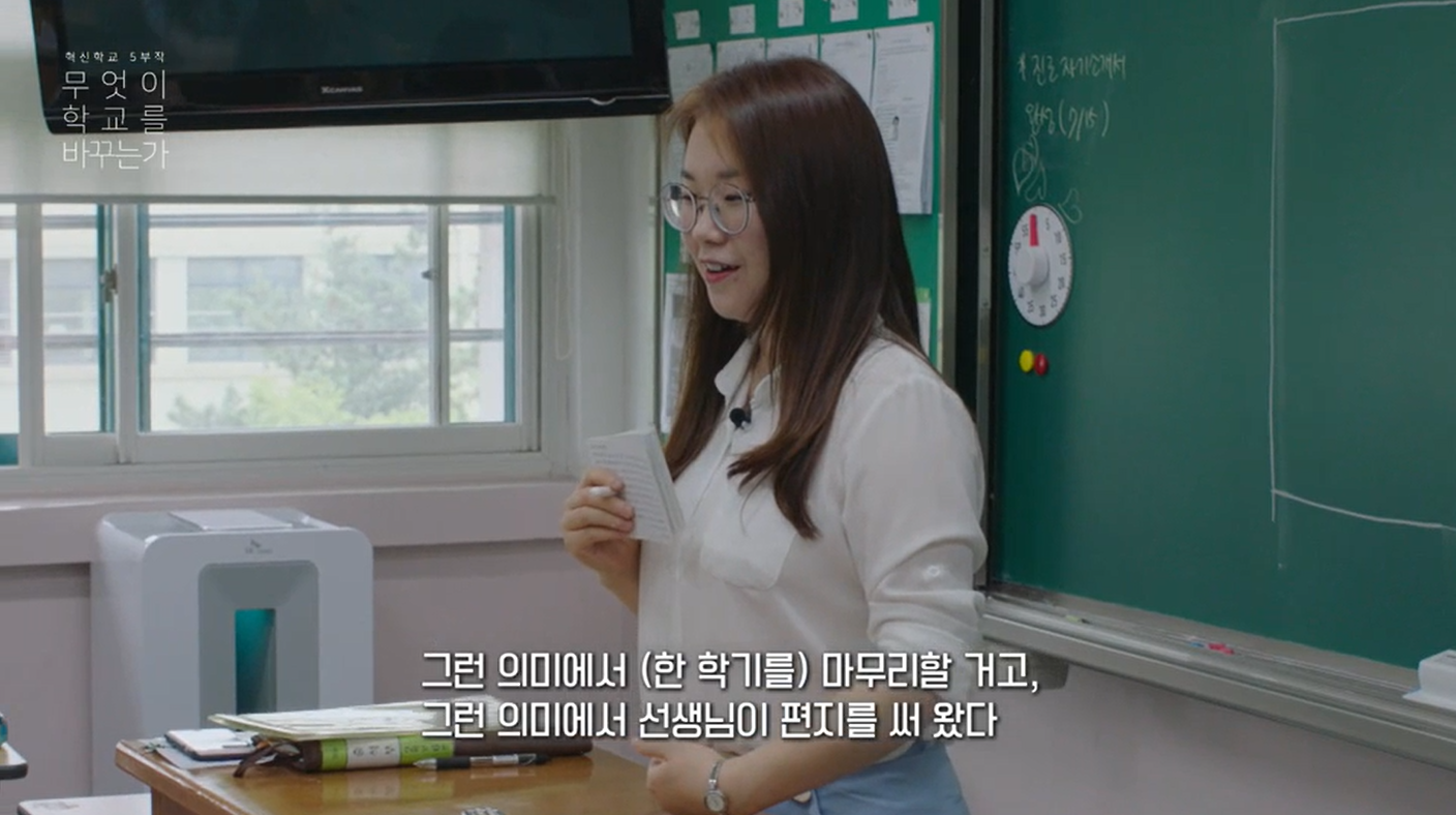 금옥여자고등학교 졸업생 성하경씨는 5년 만에 모교로 돌아왔습니다. 교육학을 가르치는 교사가 된 것입니다. 학생 이름을 모두 외웠다는 성하경씨는 ‘내가 너를 정말 아끼고 있다’, ‘너는 할 수 있다’라는 느낌을 주는 것이 굉장히 중요하다고 말합니다. 혁신학교가 뭔가 특별한 것은 아니지만, 아이들이 학교를 졸업하고 난 후 학교라는 울타리가 사라졌을 때 세상에서 스스로 두발로 살아갈 수 있어야 하고 그 힘이 학교에서 만들어져야 합니다.