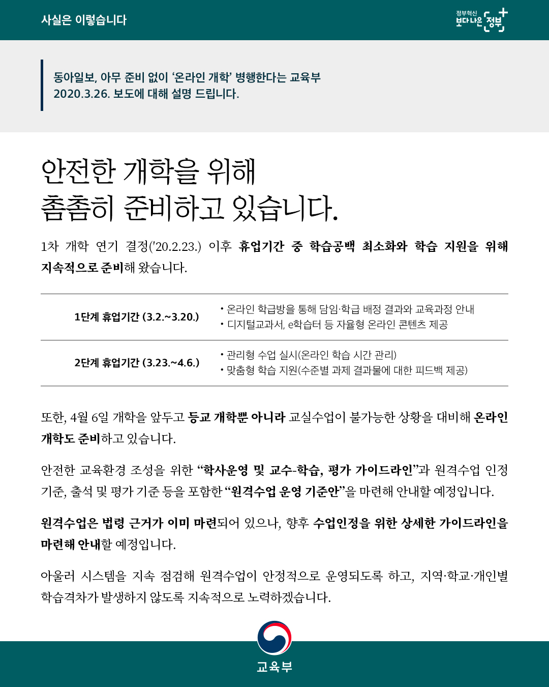 안전한 개학을 위해 촘촘히 준비하고 있습니다. 본문