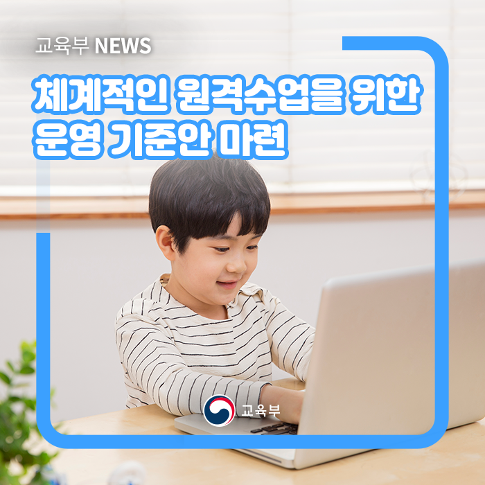 교육부(유은혜 부총리 겸 교육부장관)는 코로나19 감염병 상황에서 개학(휴업 종료) 이후 교실 수업이 불가능한 경우를 대비해, 원격수업을 통한 학습이 체계적으로 이루어질 수 있도록 ‘원격수업 운영 기준안’을 마련하였다.