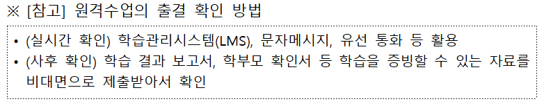 코로나19 감염병 대응을 위한 ‘원격수업 운영 기준안’의 주요 내용은 다음과 같다.