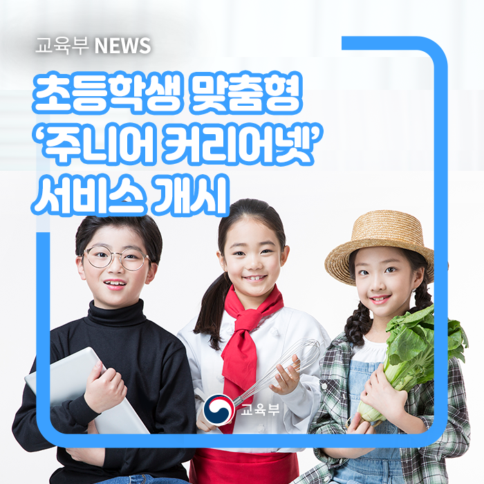 교육부(부총리 겸 교육부장관 유은혜)는 4월 2일(목)부터 초등학생 대상 맞춤형 진로활동을 지원하는 ‘주니어 커리어넷(www.career.go.kr/jr/ )’ 서비스를 개시한다고 밝혔다. 그간 커리어넷(www.career.go.kr)*에서도 진로교육자료 제공, 진로심리검사, 진로상담을 제공하고 있었으나, 초등학생에 특화된 별도의 온라인 전용 공간을 개설하는 것은 이번이 처음이다.