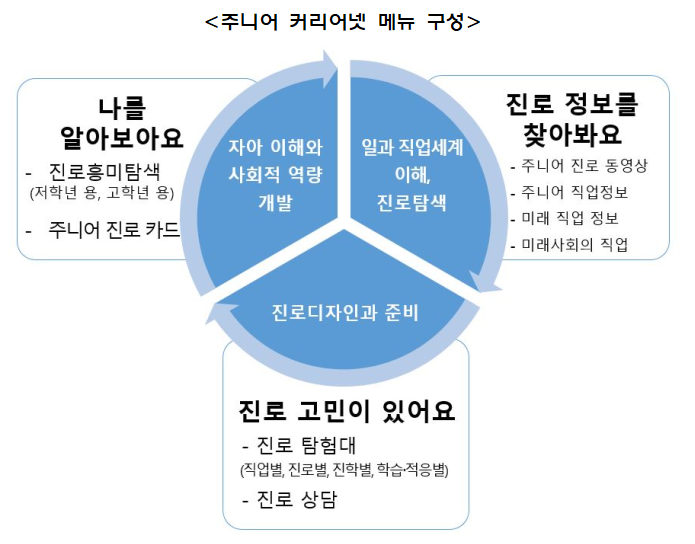 주니어 커리어넷에서 제공하는 주요 서비스는 다음과 같다.