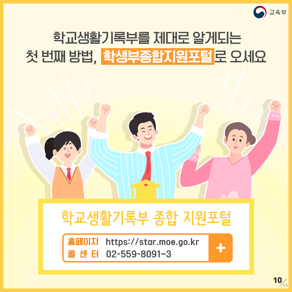 학교생활기록부에 대한 명쾌한 답! 지금 바로 학생부종합지원포털로 오세요 본문