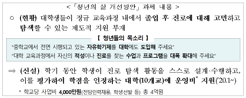 ① 대학 진로탐색 학점제 신설(산학협력일자리정책과 안성미 사무관 ☏ 6881)