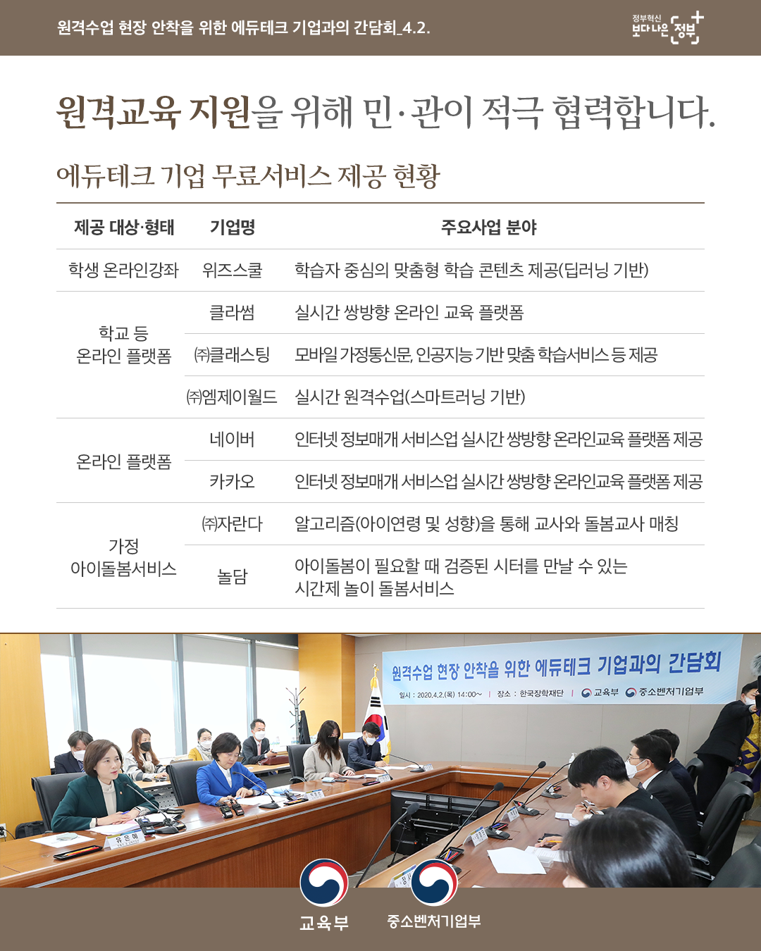 원격수업의 현장 안착을 위해 에듀테크 기업과 적극 협력합니다. 본문