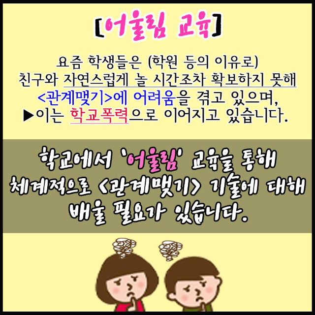 '어울림을 굳이 학교에서 배운다고?', '그냥 학생들끼리 같이 놀면 안 되나?'