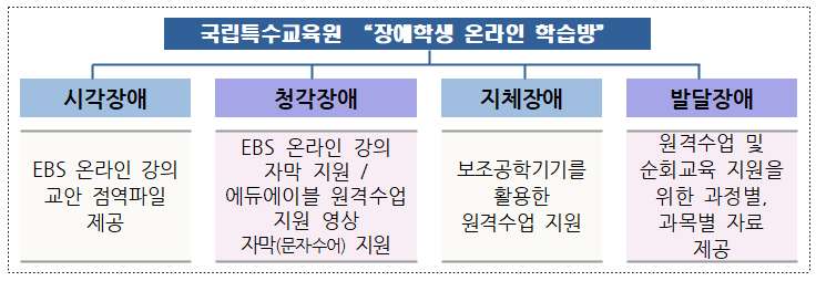 ※ 장애학생 원격수업 지원을 위해 “장애학생 온라인 학습방” 개설ㆍ운영