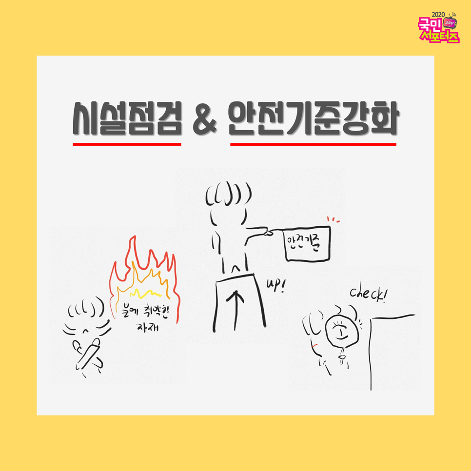아동·청소년들의 이용시설 및 제품에 대한 안전은 어떤 안전예방보다 중요하겠죠? 이에 대해서는 많은 정책적인 노력들이 이루어져 왔습니다! 예로, 2019년 국토교통부에서는 피난에 오랜 시간이 걸리는 영유아, 어린이, 청소년 등이 주로 이용하는 피난 약자 건축물은 건축물의 높이와 상관없이 불에 취약한 외부 마감재료의 사용을 전면 제한했습니다. 또한 국가기술표준원은 올해 서랍장 판매를 위한 수직 안정성 시험을 어린이가 서랍에 매달리는 상황을 가정하여 그 안전기준을 상향 조정하기도 했습니다. 더불어, 교육부에서도 2019년 2월 18일부터 4월 19일까지(61일간) 약 85,000 여개의 교육기관 시설물을 대상으로 국가 안전 대진단을 실시하기도 하였습니다.