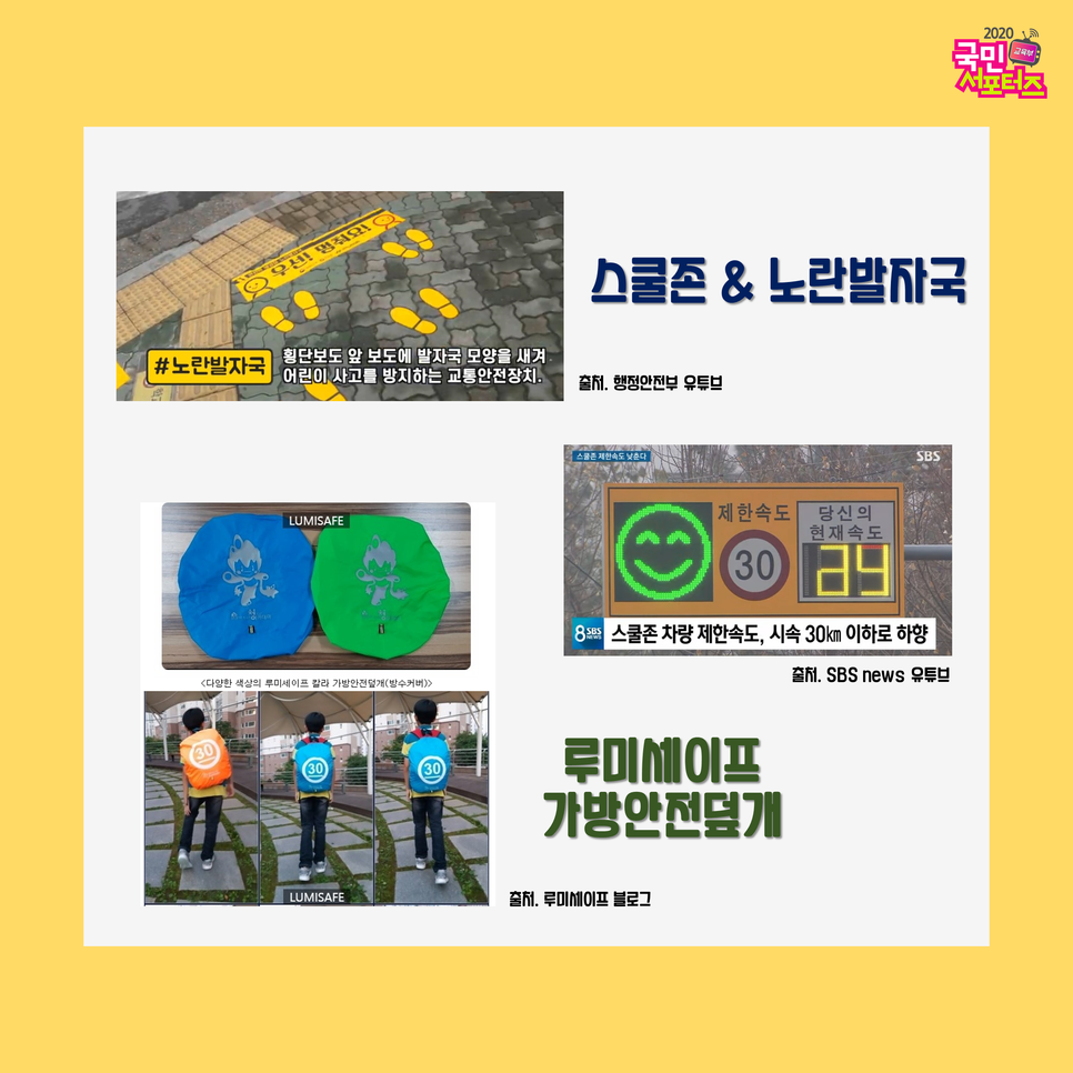 얼마 전에 발생했던 스쿨존 교통사고부터 주택화재로 제대로 피난하지 못한 어린이 사망사고까지. 리조트 수영장, 놀이터, 대형마트, 건널목, 가정 등등 이들의 안전사고 사례는 무수히 많았습니다. 그렇다면 이들의 안전을 위해 지금까지 어떤 노력들이 있었을까요?