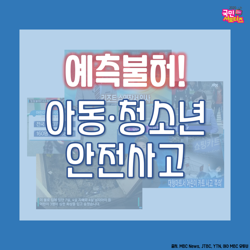 순간의 부주의로 인한 안전사고는 지금 이 순간에도 끊임없이 발생하고 있는데요. 그중에서도 아동·청소년의 안전사고는 더욱 빈번하게 발생하며, 특성상 부상 정도도 심각합니다.