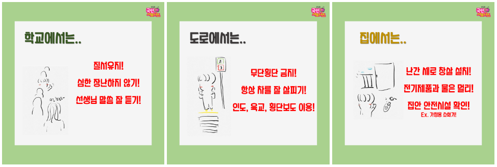 사실 안전사고 예방에 가장 중요한 역할은 바로 안전교육이 수행해야 할 것입니다. 안전교육에 대해서는 다양한 지역사회와 학교, 기관 등에서 이루어지고 있어 그중 두 가지를 대표적으로 소개해보고자 합니다.